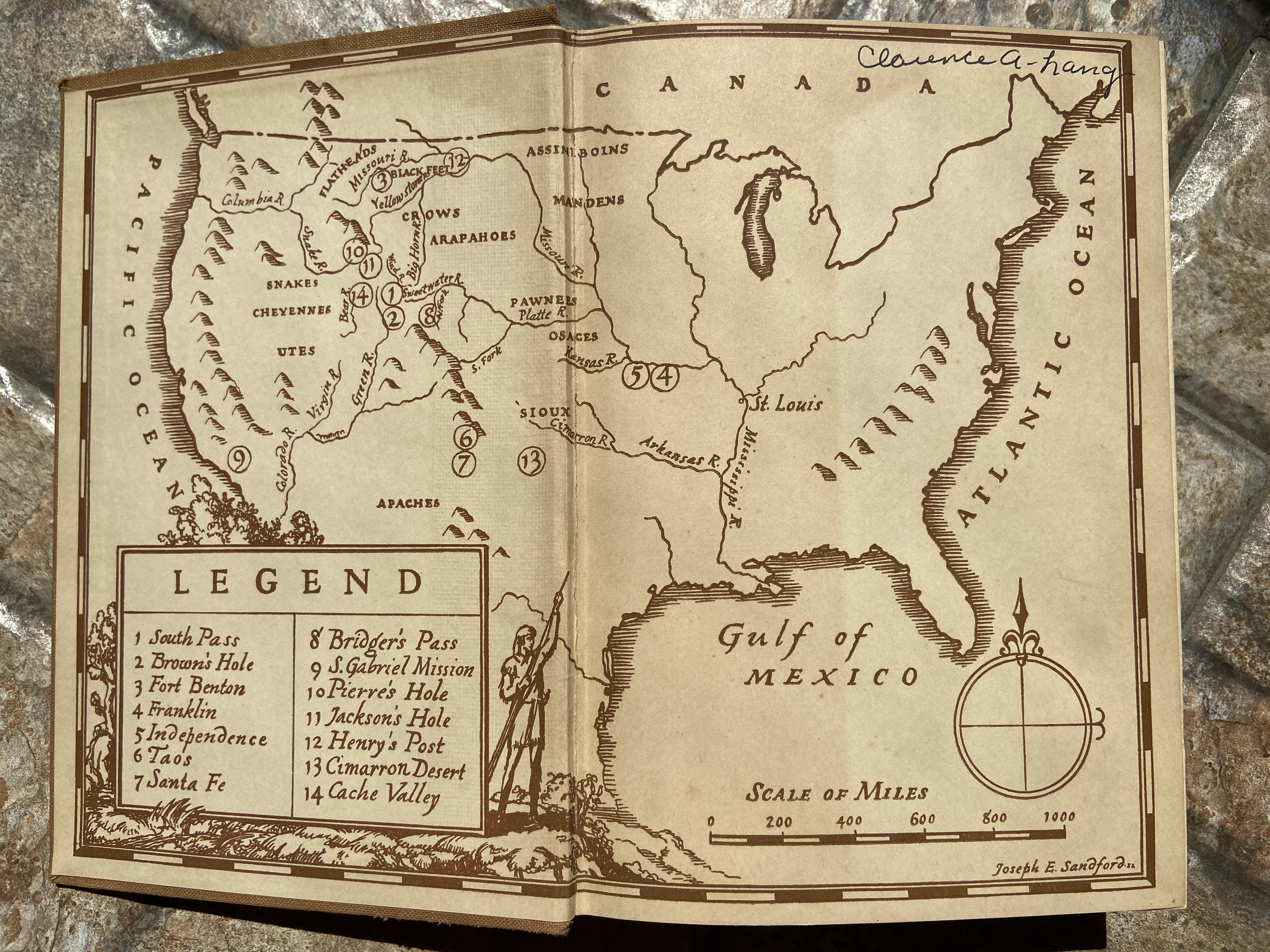 The signature above the map inside the front cover is that of Clarence A. Lang, my wife’s grandfather.