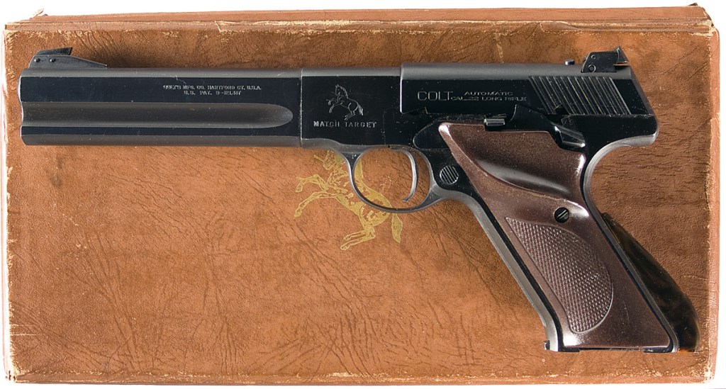 Lionel’s younger sister, Cyleine, we learn, owned a .22-caliber Colt Woodsman when she was young but by her late teens she had moved up to a double-action Smith & Wesson model 27 in .357-magnum, also with a six-inch barrel, pictured first, below. It strongly resembles Lionel’s revolver, for good reason, while the Colt, with a removeable magazine instead of a revolving cylinder and which therefore is not a revolver, is better described as a pistol.